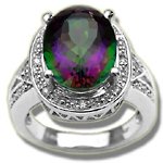 0.09 Cts Diamond & 6.24 Cts Mystic Fire Topaz Ring in 14K White Gold-10.0